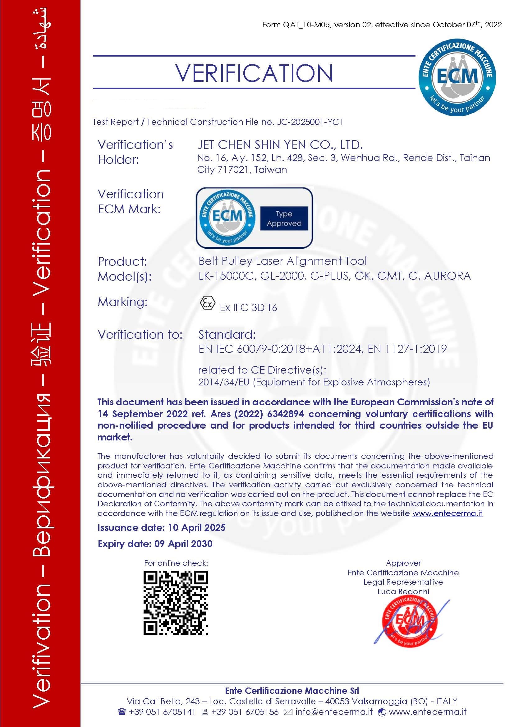 GAINER皮帶輪雷射對心儀ATEX防爆認證